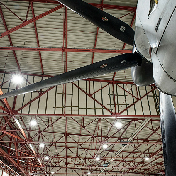 Die Gesamtfläche von Hangar 1 wurde beleuchtungstechnisch rundum saniert. Anstelle der ineffizienten und veralteten 400W HQL-Strahler, wurden die modernen EiKO STAR Disc Leuchten mit nur je 200W Leistung installiert. Fazit: -50% Energieverbrauch und deutlich geringere Instandhaltungskosten dank langer Lebensdauer von STAR Disc und erheblich bessere Ausleuchtung als bisher.