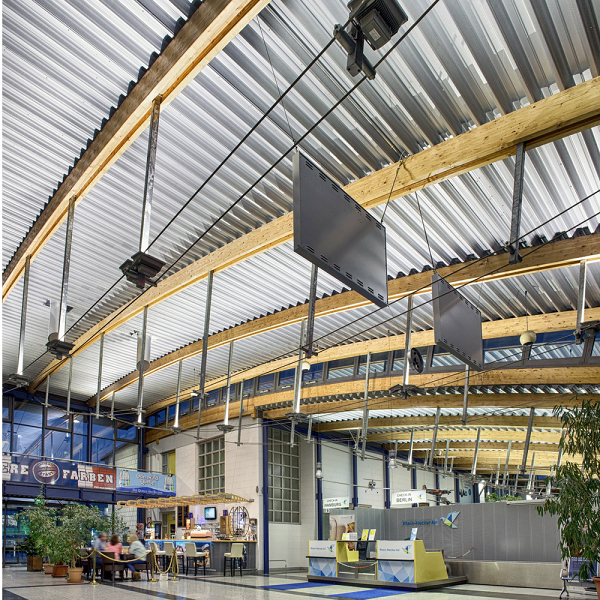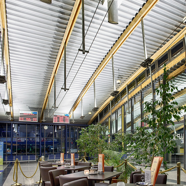 Im Innenbereich des Terminals, Check-In und Wartehalle sowie Gepäckausgabe wurden die kompletten ineffizienten Halogenleuchten gegen 30W EiKO Floodlight Leuchten ersetzt. Die damit realisierte neue indirekte Beleuchtung wird über die Metalldecke des Terminals hervorragend reflektiert und liefert so ein sehr homogenes und blendfreies Ergebnis.